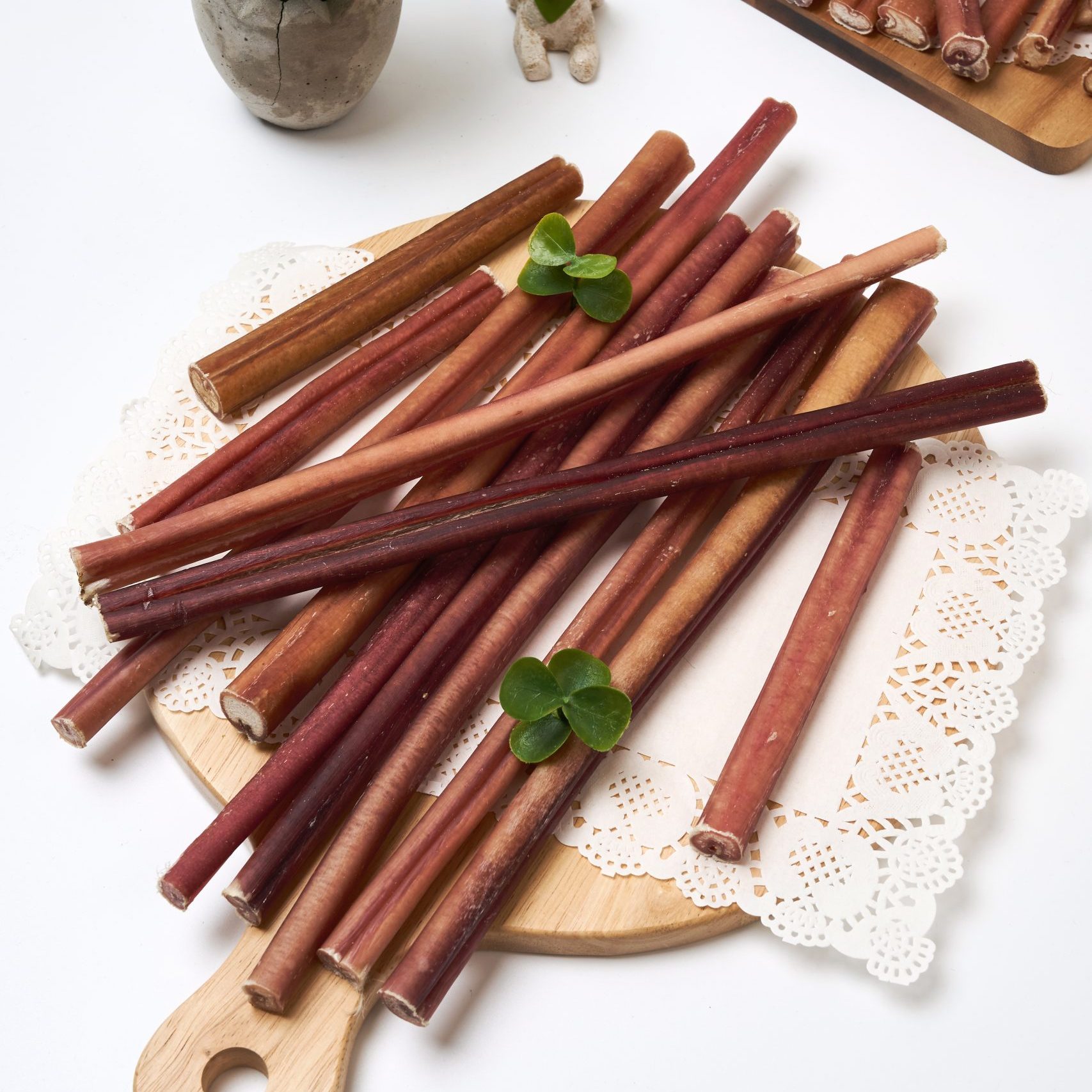 Ethically sourced and made from 100% bull pizzle. These long-lasting chews also promote healthy teeth and gums. Easy to digest, very high in protein, and low in fat. No additives, fillers, hormones, chemicals, or preservatives.
